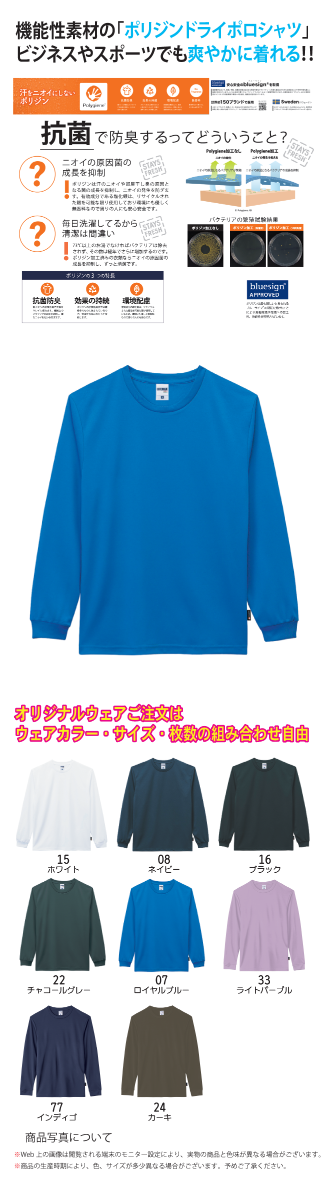 機能性素材のNEWスタンダード「ポリジンドライ」のロングスリーブTシャツ。