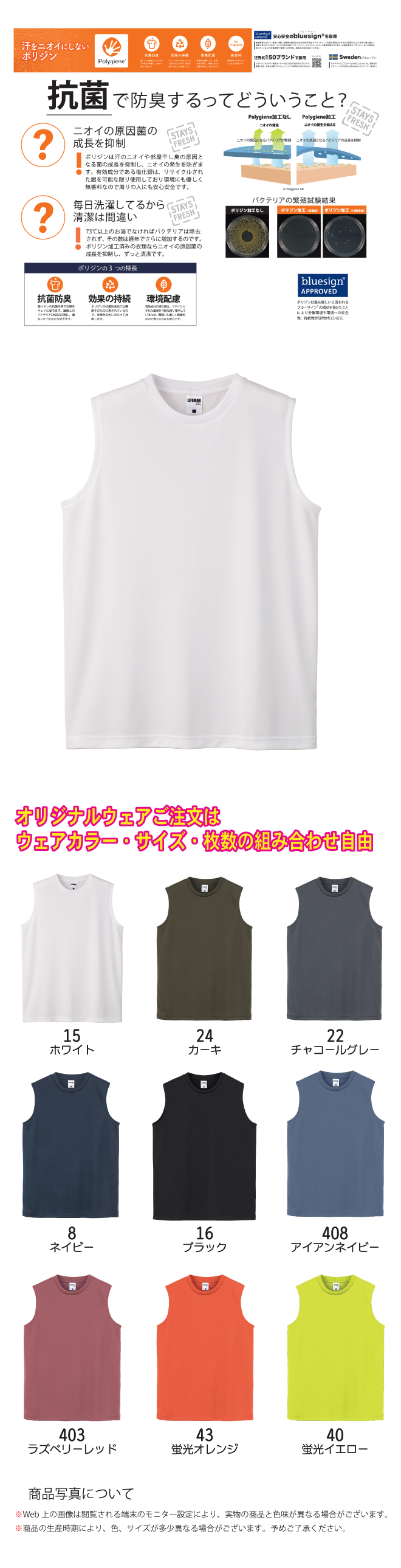 ノースリーブTシャツ(ポリジン加工)