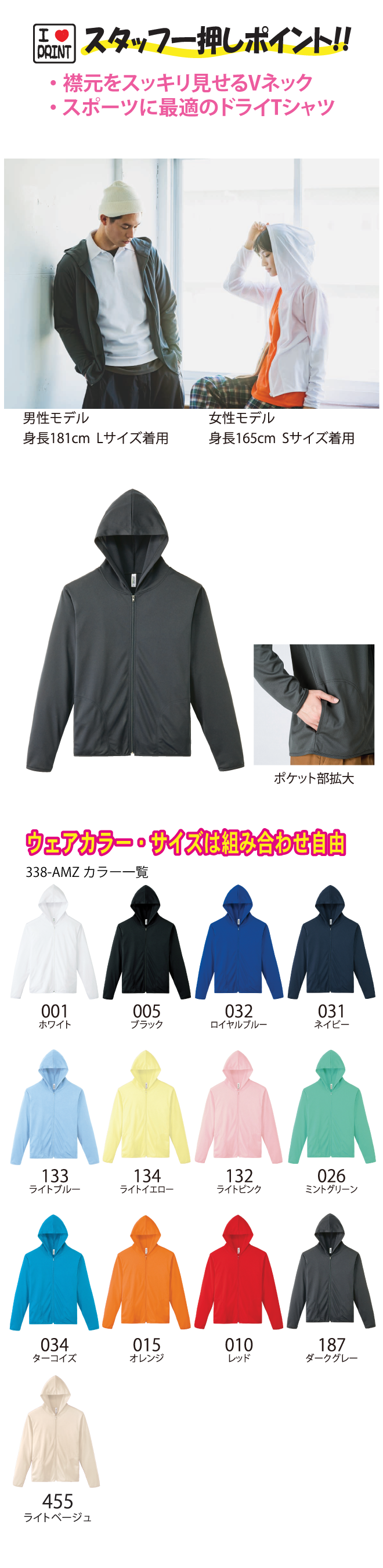 シルエットはスタンダードなタイプとなっており、カジュアルからアクティブなシーンまでご利用いただける、オリジナルドライTシャツのベースとして最適な一枚です。