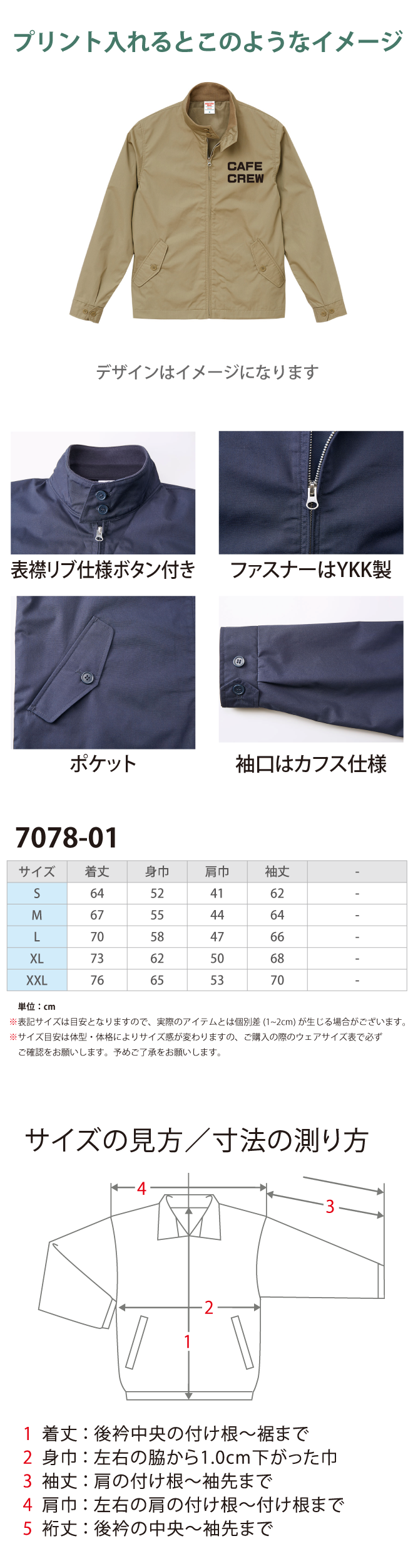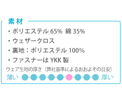 ポリエステルの耐久性と綿の快適性を適度に兼ね備え、型崩れが少ないのが魅力のT/Cウェザーを表地に使用。