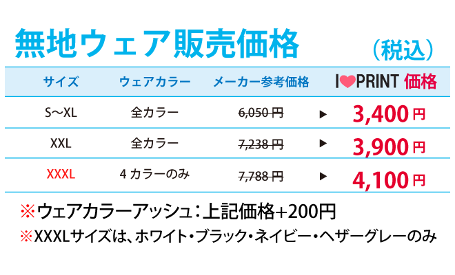 お振込の場合は入金確認後のプリント加工