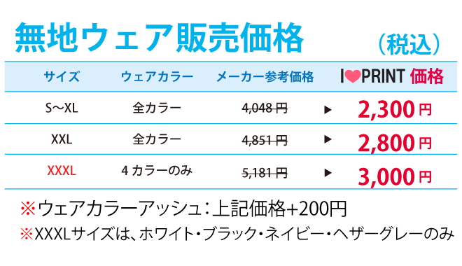 お振込の場合は入金確認後のプリント加工