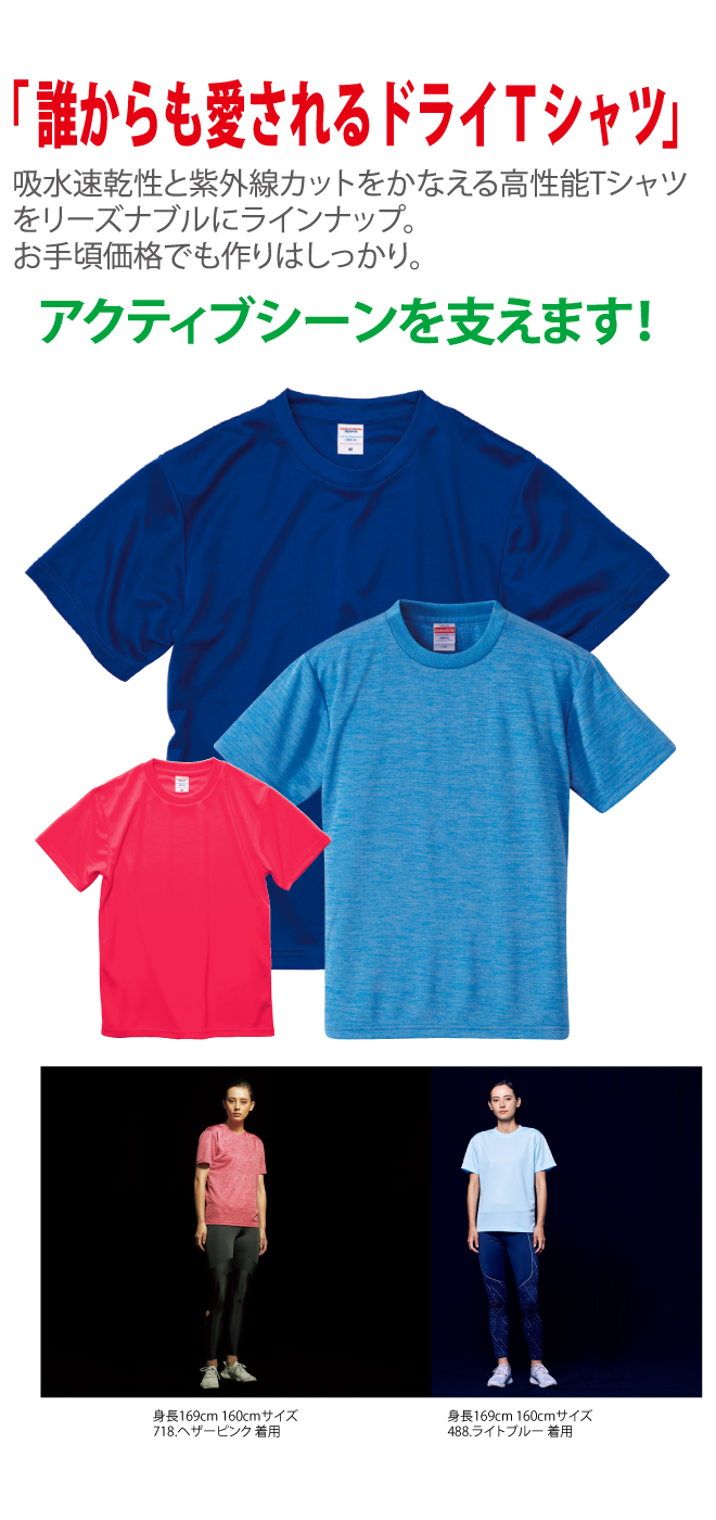 アクティブシーンに大活躍のドライ&UVカット機能付きTシャツ!