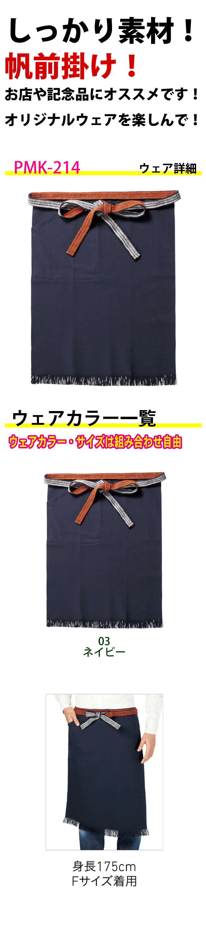 帆前掛け(日本製)ポケット付き