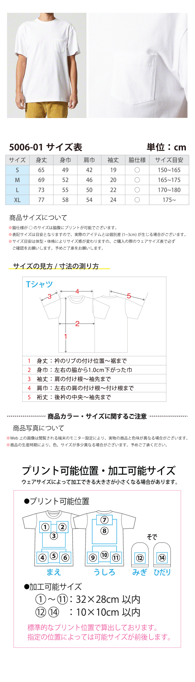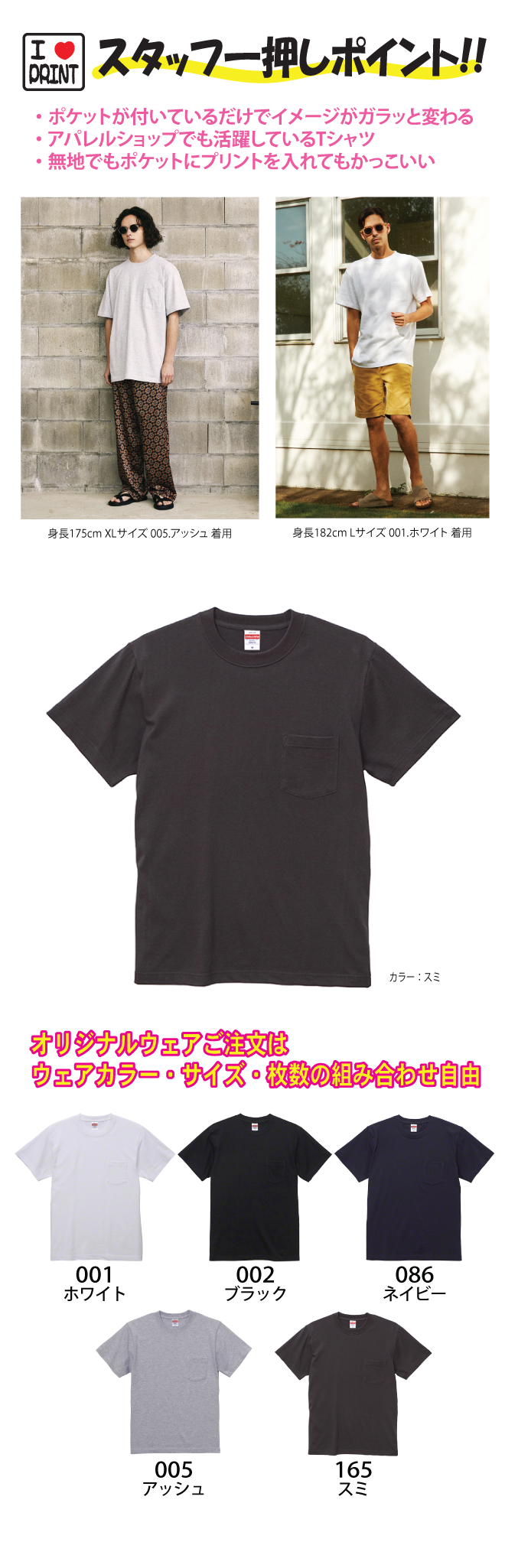 ユナイテッドアスレの代表商品5001-01をベースにした5.6オンスポケット付きTシャツ。