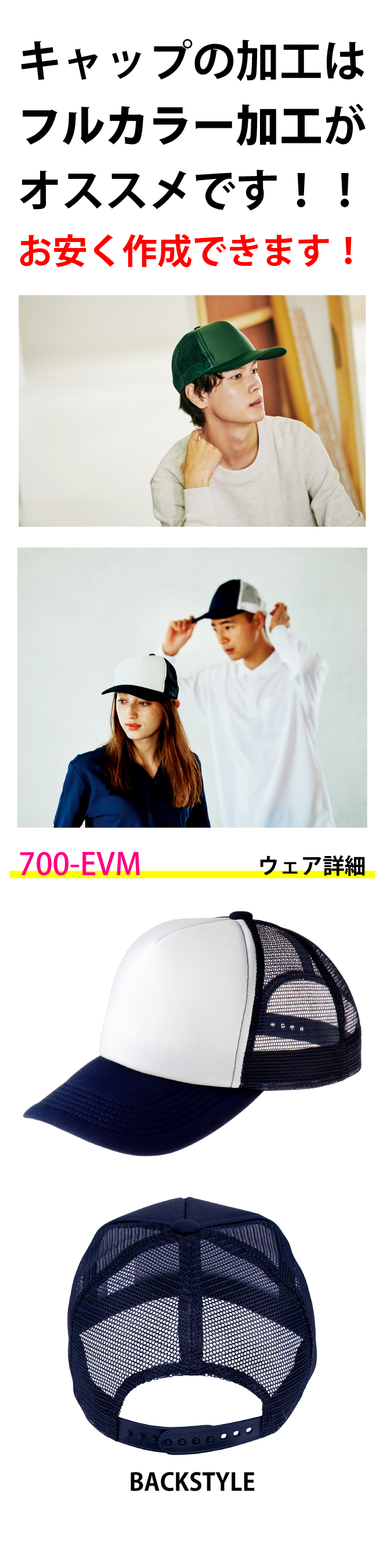豊富なカラー展開が人気のイベントメッシュキャップ。オリジナルTシャツと組み合わせてください。