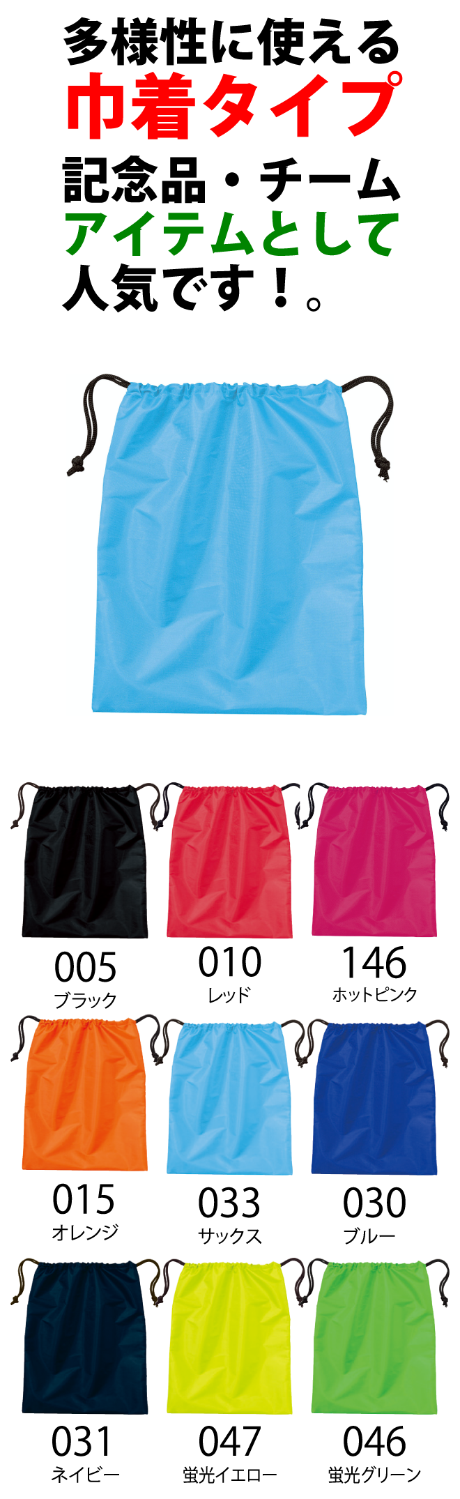 巾着タイプでいろいろな使用用途がございます