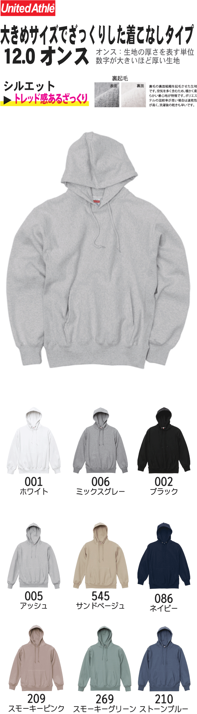 ヘヴィーウェイト スウェット プルオーバーパーカ(裏起毛)