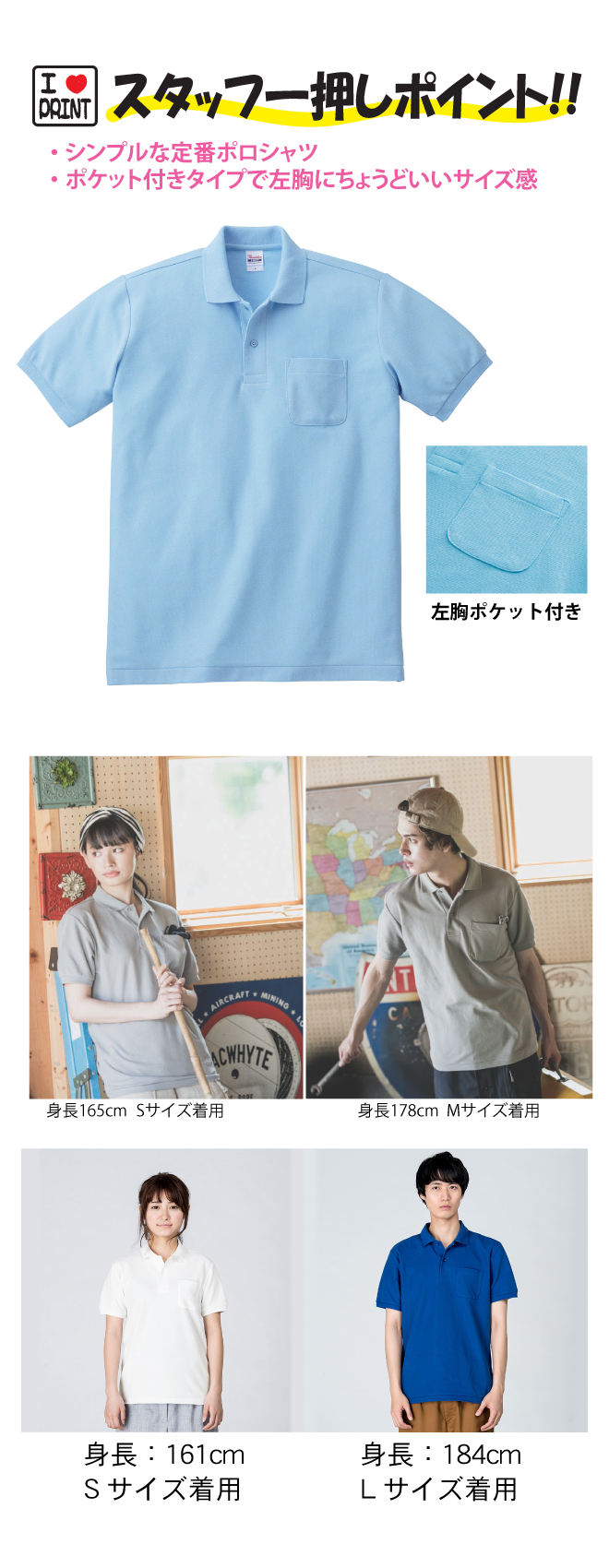 T/Cポロシャツ(ポケット付き)