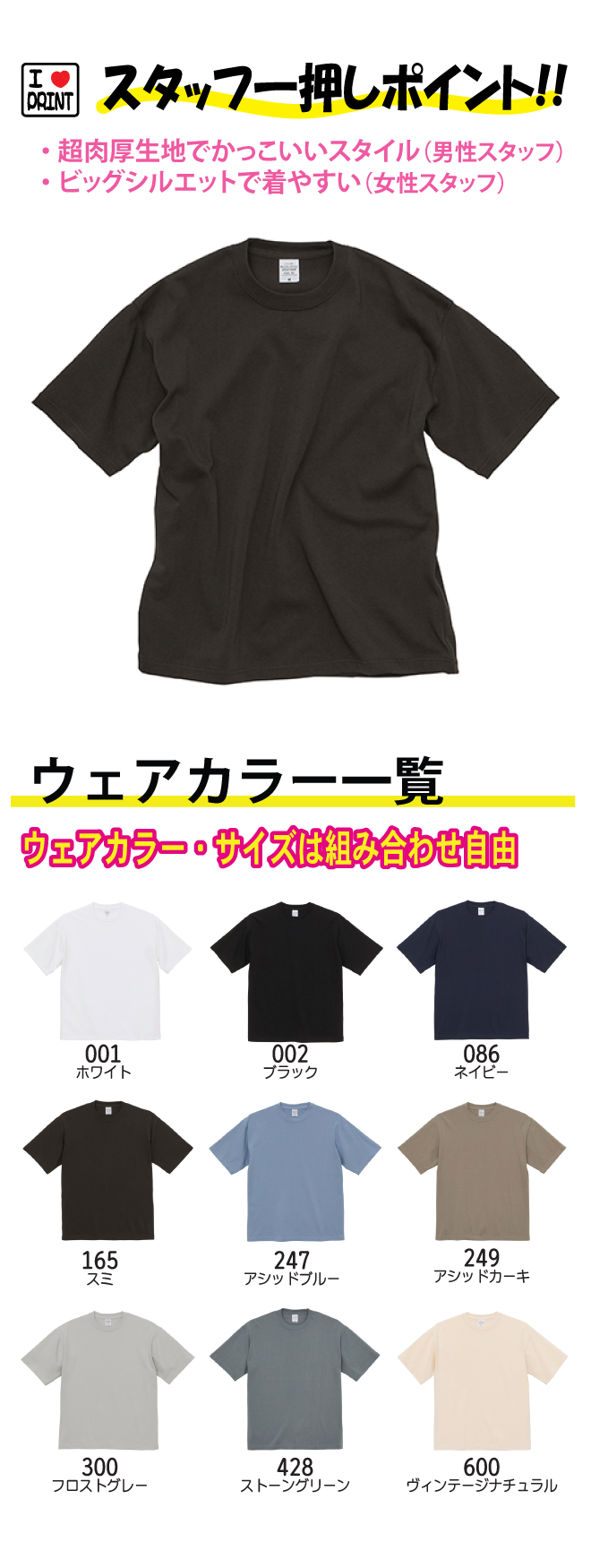 シャリ感のあるオープンエンド双糸を極厚に編み立てたヘヴィーデューティー&アメリカンな生地が魅力の最強Tシャツ!トレンドのビッグシルエットと差し色のアースカラー「アシッドカーキ」「アシッドブルー」「ヴィンテージナチュラル」などがトレンドをキャッチ。さらにステッチワークにおいても運針数を粗目にすることで、クラシカルな雰囲気も演出。無地のアウトウェアとして着てもサマになる、United Athleのこだわりが凝縮された自信のプロダクトです。