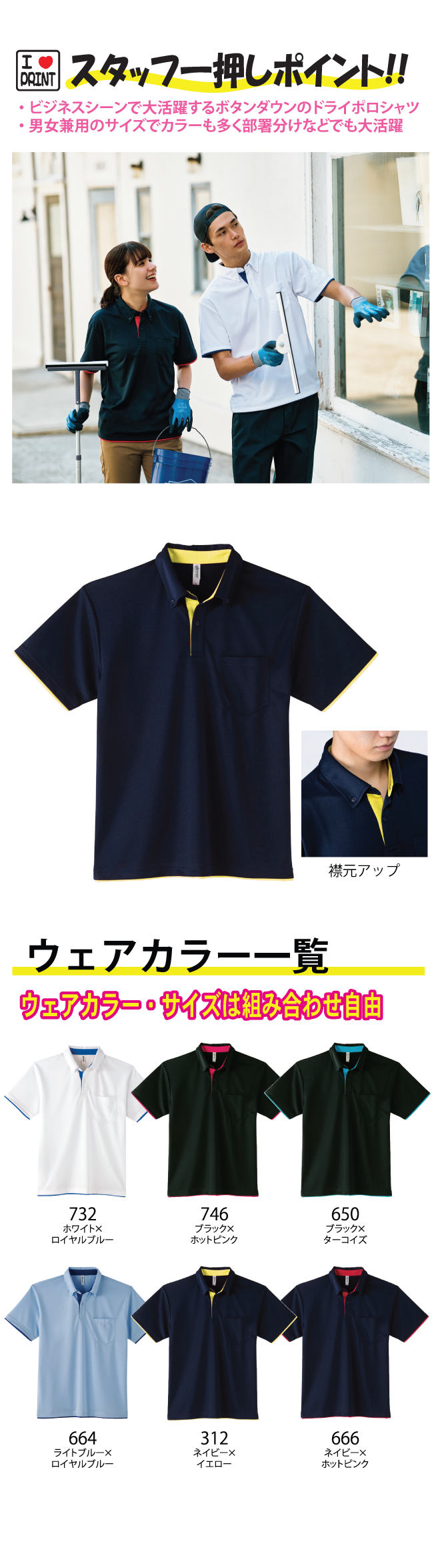 仕事着にも最適なドライポロシャツだから、暑い夏にも負けない素敵なビジネスシーンにオススメです。