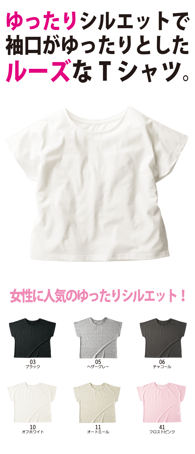ラクに着られるドルマンTシャツ。チームでおそろいのTシャツを着ればかわいいチームになります。