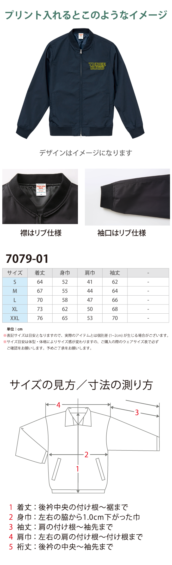 リブは毛玉ができにくい素材で、肌ざわりは滑らか。ファスナーはYKK社製ダブルスライダー。裏地は身生地と同色で、プリントをおこなう際の加工板が入るふらし仕様となっています。