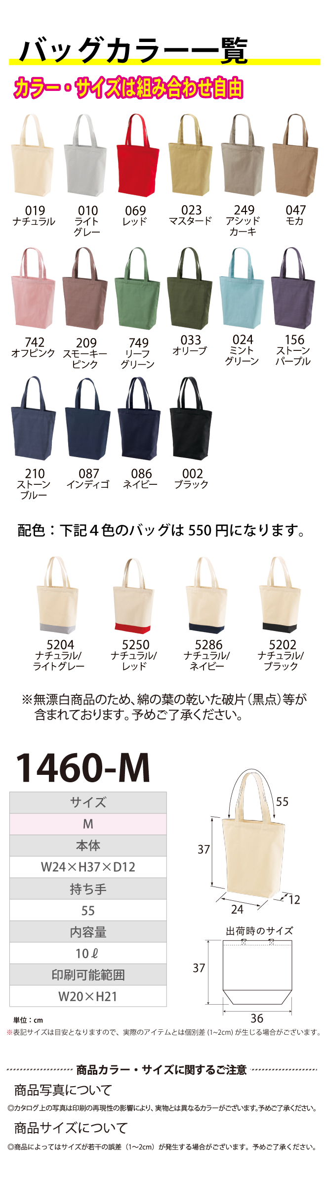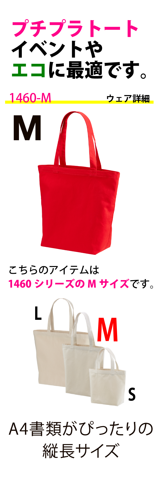 丈夫なキャンバス生地に、United Athle独特の配色などをあしらえたプチプラトートバッグ。S・M・Lの3サイズ展開で、オリジナルエコバッグのベースとして人気です。