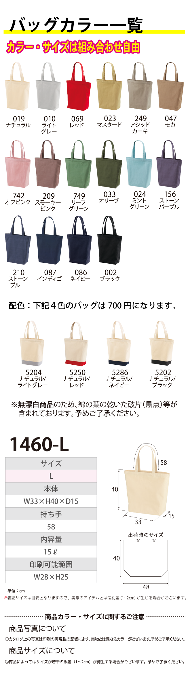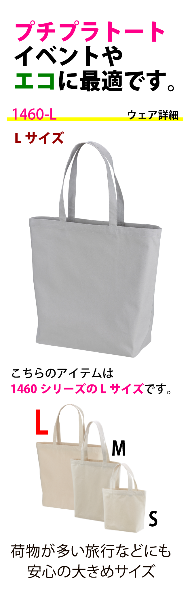 丈夫なキャンバス生地に、United Athle独特の配色などをあしらえたプチプラトートバッグ。S・M・Lの3サイズ展開で、オリジナルエコバッグのベースとして人気です。
