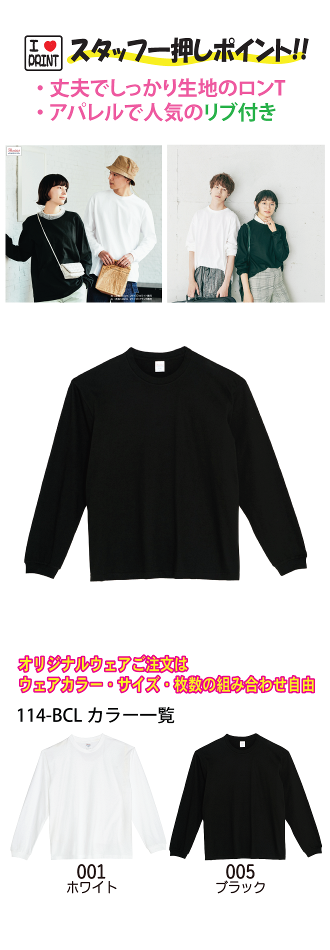 これ一枚で王道ストリートスタイルの完成。袖口リブ付きヘヴィーウェイトロンT