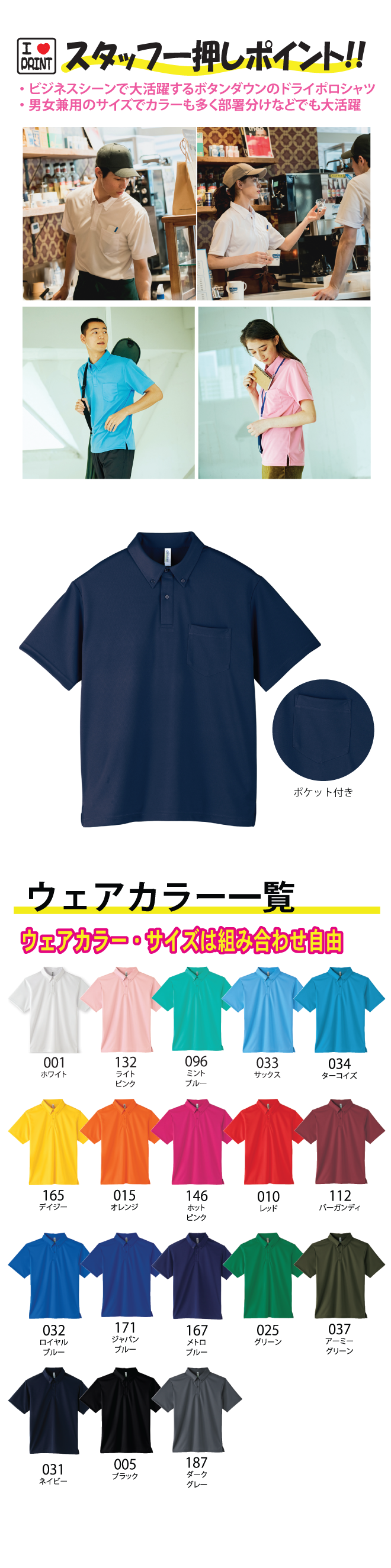 ドライボタンダウン ポロシャツ(ポケット付き)