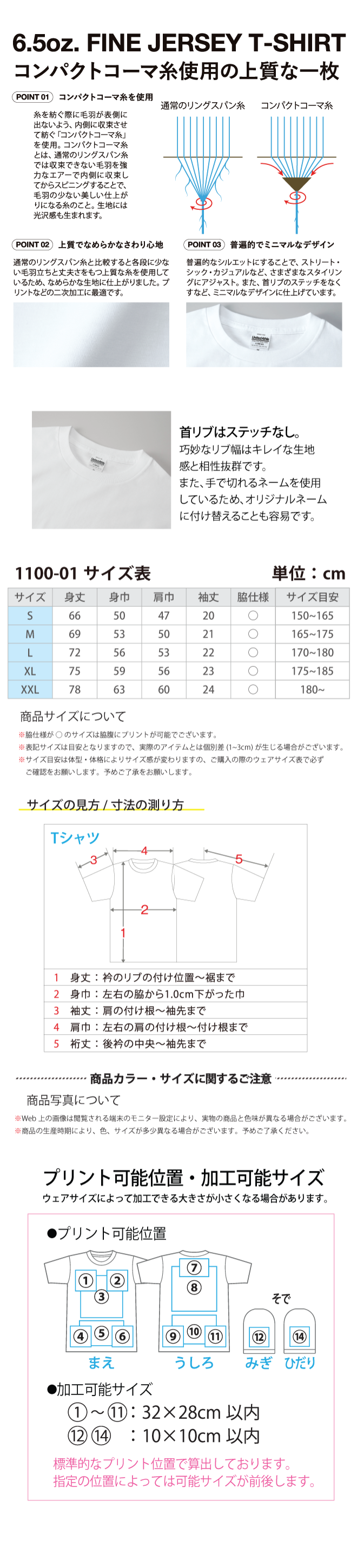 糸を紡ぐ際に毛羽が表側に出ないよう、内側に収束して紡ぐ「コンパクトコーマ糸」を使用した、上質でなめらかなさわり心地を実現したTシャツ。コンパクトコーマ糸は、通常のリング糸と比較すると各段に少ない毛羽立ちと丈夫さをもつ上質な糸なので、表面のなめらかさはプリントなどの二次加工にも最適。さらに、適度な厚みのある生地にこだわり、普遍的なサイズ感にすることで、ストリートはもちろんのこと、シックな装いや、ヨーロピアンカジュアルなスタイルなど、さまざまなスタイリングにアジャストします。