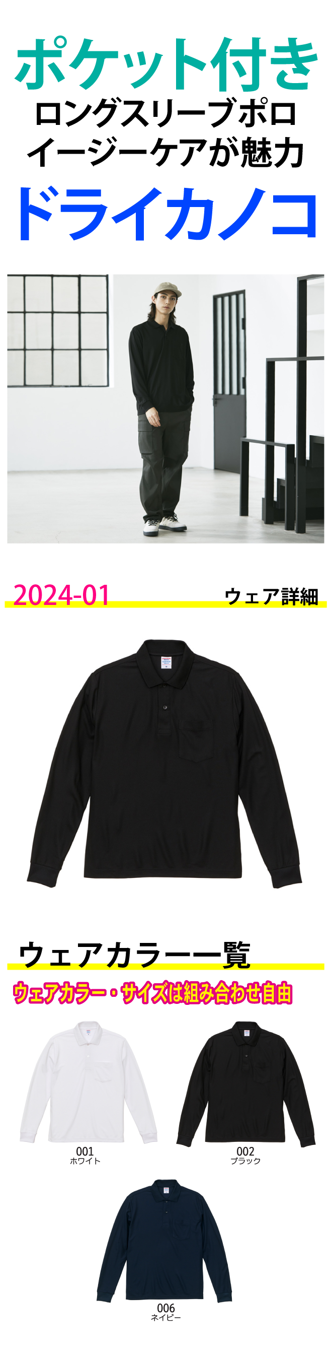便利なポケット付きロングスリーブポロ。イージーケアが魅力のドライカノコシリーズ。