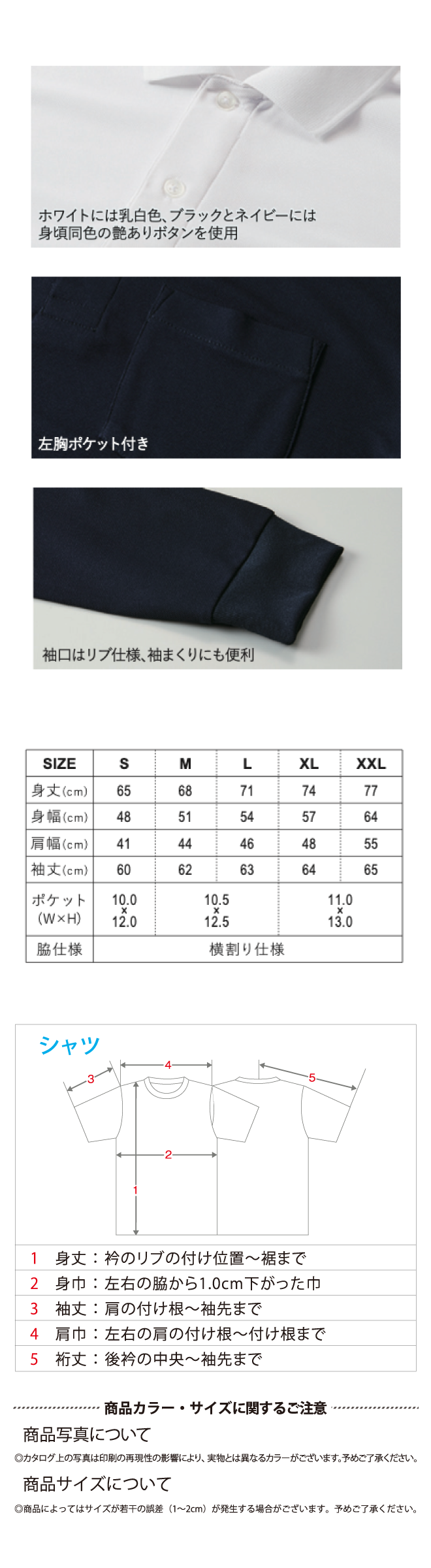 ご要望にお応えして、人気の「スペシャル ドライ カノコ ポロシャツ」シリーズにロングスリーブモデルをリリース。繰り返し洗っても色落ちしにくく、洗濯後のお手入れも簡単、さらに胸ポケットありという文句なしの一枚。また、作業時にだぶつきがないように肩周りから袖先までのサイズにこだわりぬいたユニフォームにピッタリのアイテムです。