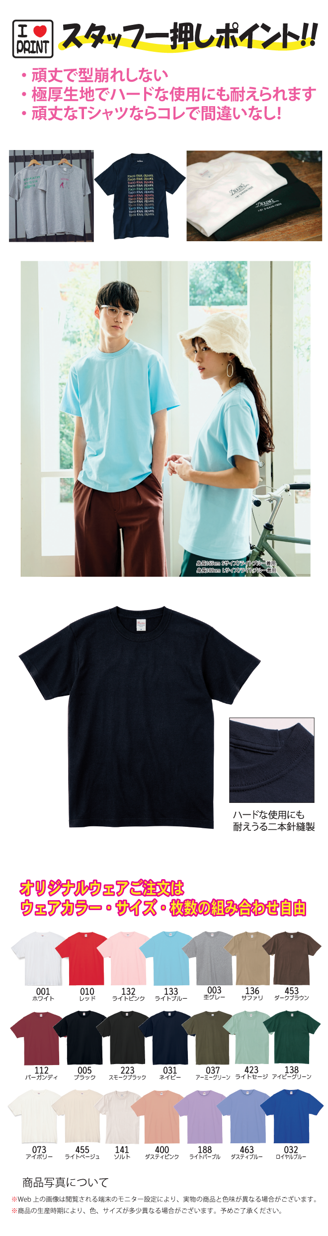 一般的なTシャツよりかなり厚く、透けにくく1枚で主役になる存在感。