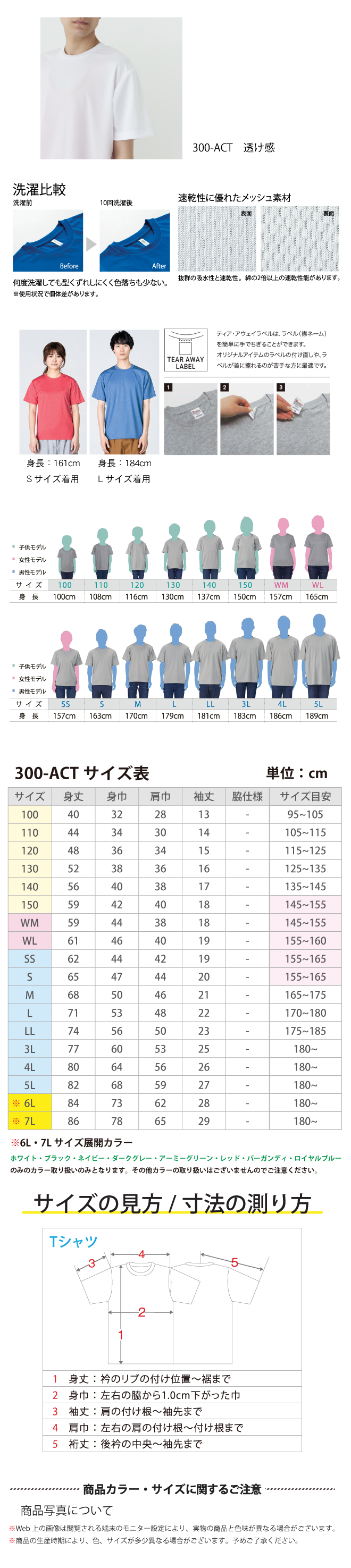 シルエットはスタンダードなタイプとなっており、カジュアルからアクティブなシーンまでご利用いただける、オリジナルドライTシャツのベースとして最適な一枚です。